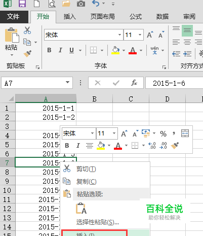选中一整行,直接在行号上点鼠标右键,在弹出的快捷菜单中选择【插入】,这样就直接插入一新行。