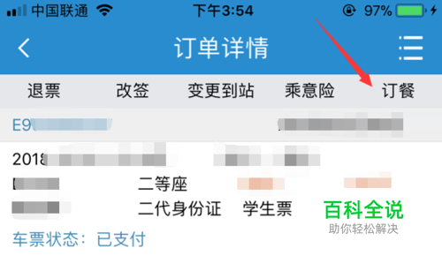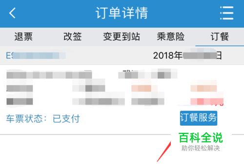 首先,我们点击打开12306手机客户端,然后打开自己的车票订单,点击如图所示的订餐