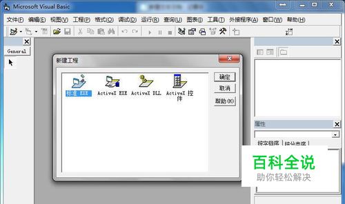 打开VB程序,依次点击“文件”--“新建工程”,我们选择“标准EXE”,单击“确定”按钮。