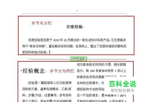 连续分节符:新节从分节符后面连续开始,这种较多的用于发表论文时,摘要不分栏,正文要分两栏的情况。实际效果如下图