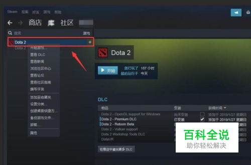 第1步:打开steam软件,然后右键点击DOTA2的图标,如图所示;