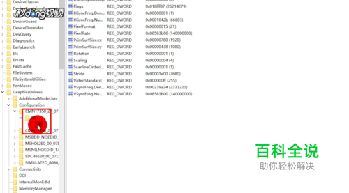 然后依次单击“HKEY_LOCAL_MACHINE”—“SYSTEM”—"ControlSet001"—“Control”—“Graphicsdrivers”—“Conligurstion”—“00”