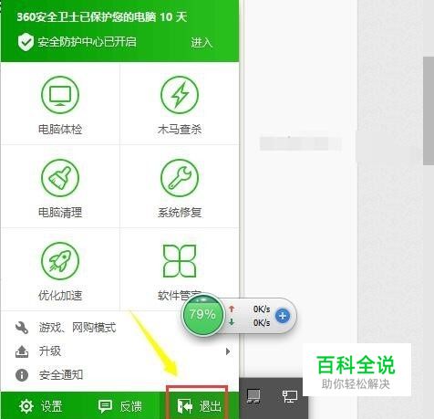 点继续推出按钮,完全退出,不要安全防护,如下图所示
