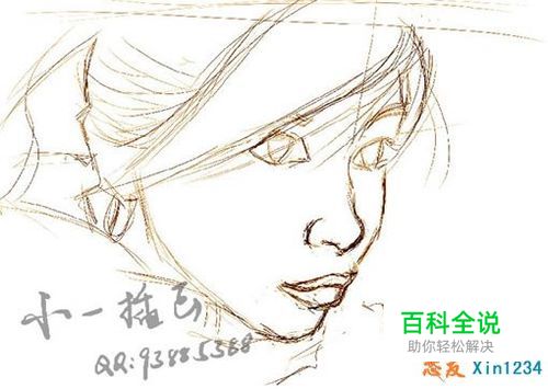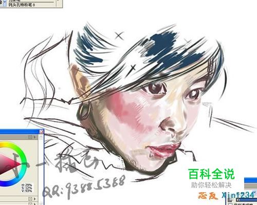 5.加水笔柔化头发和围巾.注意虚实.