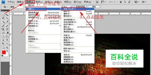点击ps cs4菜单栏的“图像”,在下拉菜单中点击“调整”,“亮度/对比度”。