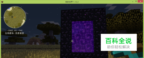 材料准备完毕后,下面来做地狱传送门,可以是14个黑曜石组合,也可以是10个黑曜石组合,最后打火石点火,就完成了,进入地狱传送门中,等待几秒就传送到地狱中了。