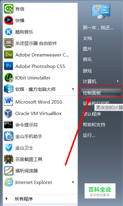 打开开始菜单,或者按键盘上的windows键,找到控制面板