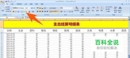 给表格加底色,就很简单了,打开一个示范表格,先选中要添加底色的那个单元格,然后点击上方那个桶状的图标,这样就为表格中的这个单元格添加上了底色。