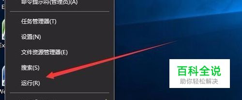 在Windows10桌面右键点击左下角的开始按钮,在弹出的菜单中选择“运行”菜单项