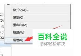 右击你出问题的盘,比如E盘或F盘,也就是你每次保存在这个盘时会弹出那个不能保存没有权限窗口的那个盘,随后选择其“属性”,如下图: