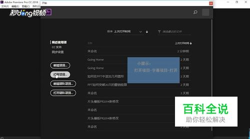 打开Pr,选择“打开项目”,打开一个项目。