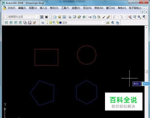 打开一个CAD,我这里画了四个图形,分别是长方形、圆形、正五边形、正六边形,他们分别在两个图层里。