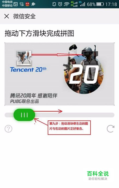 第九步:页面转到了如下页面。需要向右拖动绿色的滑块,让界面上方左侧的图片往右边移动到右侧的图片上,让它们重合就行了。