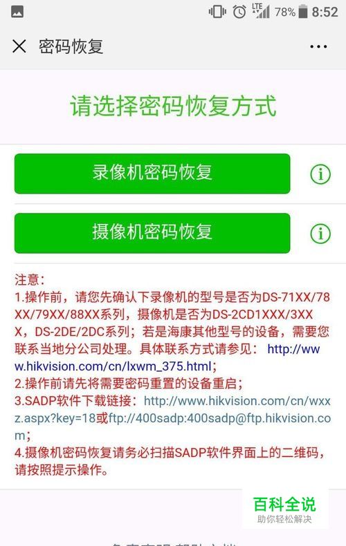 查看摄像头型号需要SADP软件,可以直接去官网搜索下周,后者下面有提示的链接,再找不到,直接找客服要也可以的,安装很简单下一步即可,搜索,先勾选上,然后点击右边的忘记密码