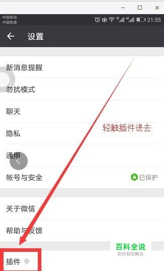 弹出设置界面,在靠下方的位置有一个插件按钮,轻触进去