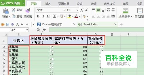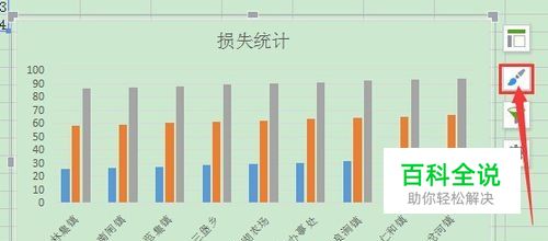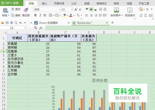 得到生成的柱状图表,图表中最上方中间为图表标题,横坐标显示各镇名称,纵坐标显示各项损失的数据,最下方是柱状图图例