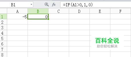 实例一,判断A1的值大于0还是其它。 在B1单元格中输入=IF(A1>0,1,0)。当我们在A1输入大于0的数,B1自动显示“1”,当我们在A1输入小于0或等于0时,B1自动显示0。 这里我们学会根据条件返回真假值。