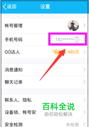 返回到设置界面,可以看到手机号码后面已经显示了绑定的手机号码。