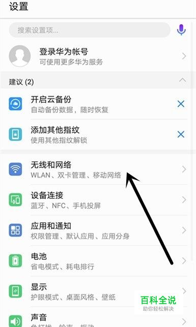 打开手机后,点击打开【设置】图标,此时页面会弹出手机的设置页面,在手机的设置页面我们点击【无线和网络】选项按钮。