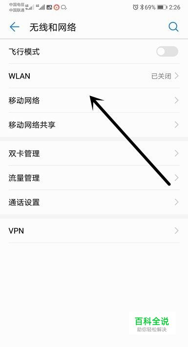 此时页面会切换到无线和网络设置页面,在无线和网络编辑设置页面我们点击下方的【移动网络】设置按钮。