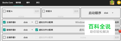 把主存储器的复选框打上勾,再点击选择,找到你下载的Windows.img镜像,把它导入进去。