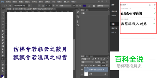 在PS中选择文字图层,然后启动字由字体软件,点击【云字库】可以在右侧看到很多漂亮的中文字体。