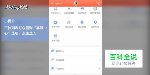 进入我的页面,下拉列表可以看到客服中心选项,点击进入。