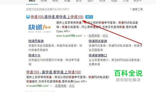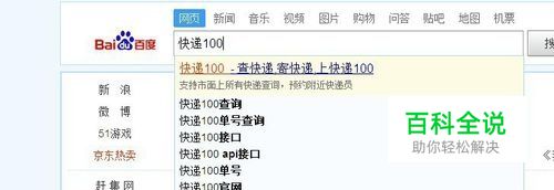 拿到快递单号后,我们打开浏览器在搜索框中输入‘快递100‘点击搜索