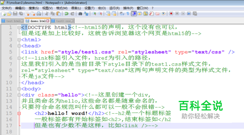 编写test.html文件,小编的习惯是编写完html文件一个div后,同时调整css样式文件,下面是完整的html文件和css文件代码