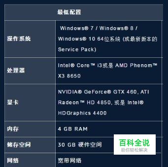 先看一下,守望先锋游戏最低配置的要求: 最低配置: 操作系统:Windows 7 / Windows 8 / Windows 10 64位系统 (或最新版本的 Service Pack) 处理器:Intel Core; i3或是 AMD Phenom X3 8650 显卡:NVIDIA GeForce GTX 460, ATI Radeon HD 4850, 或是 Intel HDGraphics 4400 内存:4 GB RAM 分辨率:最低 1024 x 768