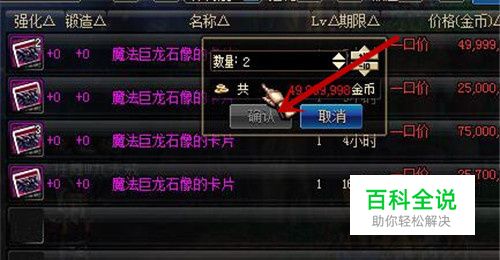 点击后弹出购买确认对话框,我们点击“确定”,即可购买成功。我们购买后的巨龙卡片在背包中可以查看,这样我们就获取啦巨龙卡片,是不是很简单。告诉大家我们每周参加2次南部溪谷,之后在做做任务和活动,每天刷完疲劳,这样基本上半个月就够啦,如果角色很多的话,很快就能获取。