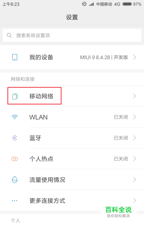 以MIUI系统为例,打开MIUI系统设置界面应用,点击页面中的“移动网络”设置选项。