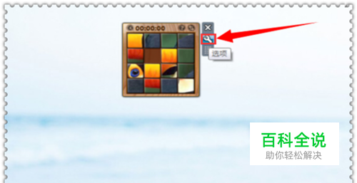 桌面上出现拼图后,你就可以进行拼图了。 如果你不喜欢这张图片,你可以更换图片,系统有11张图片供选择,你先将鼠标移至该图标上,图片右上角会出现一个工具条,单击中间的【选项】按钮,之后单击【上一个】或是【下一个】的按钮可更换拼图的图片。