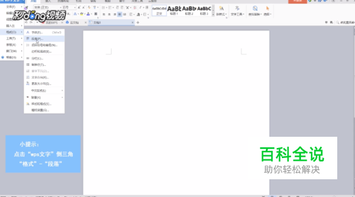点击”wps“文字倒三角,”格式“,”段落“。