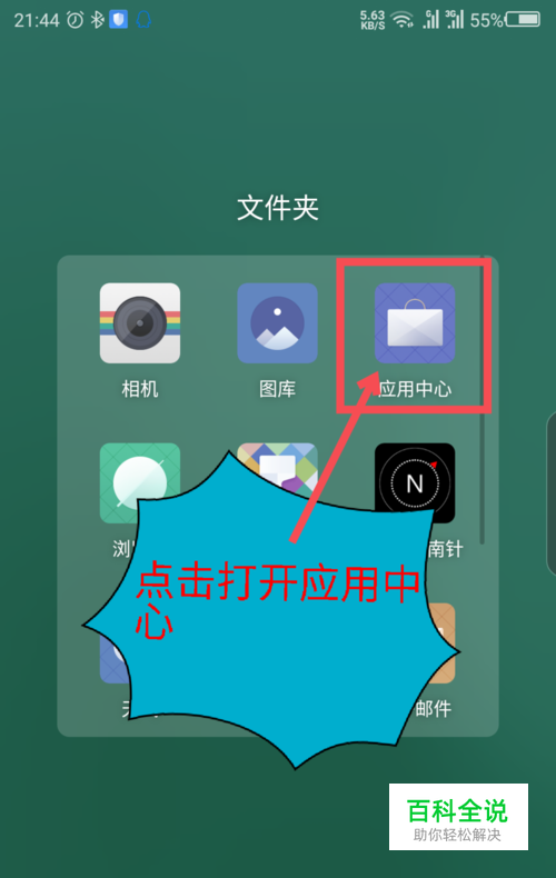 点击打开手机自带的或者自己下载的应用商店(应用中心)类的软件。操作方法如下图所示