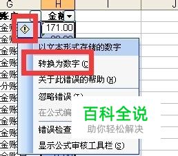 选择这一列所有数值,点击感叹号,在弹出的菜单中选择“转换为数字”