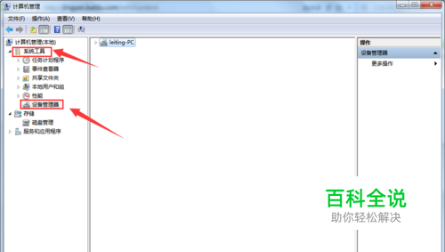 进入计算机管理后,打开系统工具,在下拉菜单中选择性能,在性能下的下拉菜单中选择设备管理器