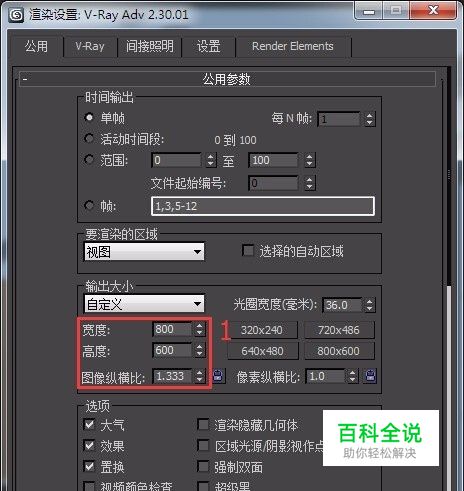 首先,单机菜单栏的渲染——渲染设置(F10),锁定图幅纵横比,宽度、高度选择800*600的,如下图