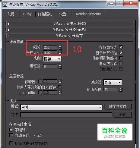 下面,间接照明——打开间接照明——在一次反弹里面选择“发光图”——在二次反弹里面选择“灯光缓存”。