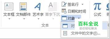 单击“插入”>“对象”。