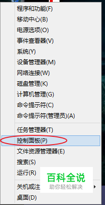 接下来我们关闭这个功能,在开始菜单点击右键 打开控制面板。