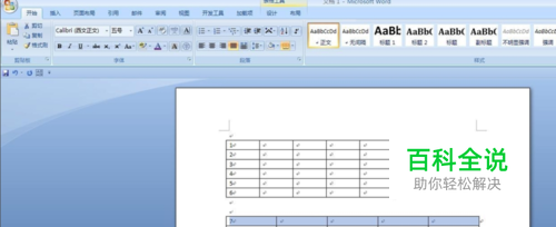 3、把光标移动到第一个表格下面的第一个回车符的地方,如图所示。当光标在哪行里进行闪烁表示当前已经选中。不过没有看到光标需要在进行选择。