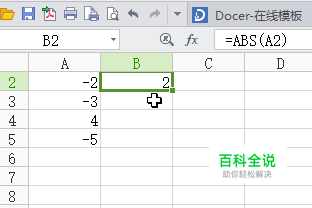 取绝对值函数 选中表格填入=ABS(数值)