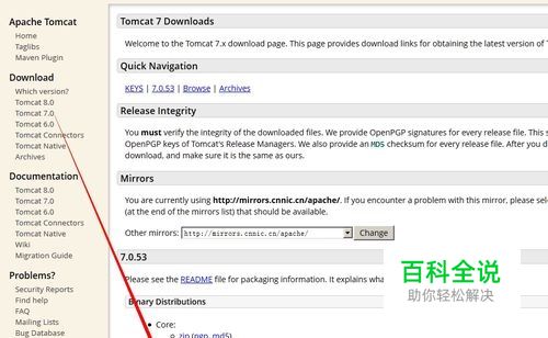 在官网下载软件:tomcat.apache.org/download-70.cgi