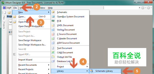 然后选择File->New->Library->Schematic Library,建立一个原理图库文件。