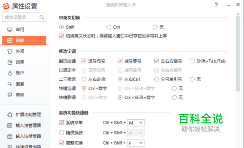搜狗输入法快捷键设置 2025-05-16 14:48:10 搜狗输入法快捷键设置 似乎不太好找 操作方法 01 右键输入法图标 点击 设置属性 02 点击 按键 设置好了 应用确定就可以了 03 字太少 这些是废话不用看 04 字太少 这些是废话不用看 赞 (0) 相关推荐 搜狗拼音输入法怎么设置热键?搜狗输入法快捷键设置教程 快捷键可以是我们加快工作效率。搜狗拼音输入法也有这一项功能,不知道大家是否经常使用,下面小编就为大家介绍一下搜狗拼音输入法怎么设置快捷键 1、首右键单击输入法上任何一处,弹出对话框后在鼠标左键单击“设 ... 搜狗输入法快捷键怎么设置 搜狗输入法快捷键怎么设置?现在,不管使用什么感觉,我们都很喜欢使用快捷键,因为这样会让我们的工作效率加快.搜狗输入法也有这一项功能,不知道大家是否经常使用,下面小编就为大家介绍一下搜狗输入法快捷键设置 ... 电脑搜狗输入法如何设置查看快捷键 搜狗输入法是大家常使用的输入法,我们在使用电脑的时候,可以通过快捷键打开搜狗输入法的一些功能,让我们用起来更加省事,下面就告诉大家,电脑搜狗输入法如何设置查看快捷键? 操作方法 01 首先我们将搜狗输 ... 搜狗输入法怎么设置快捷键 搜狗输入法是最常用的输入法之一,它的功能也很强大,那么搜狗输入法怎么设置快捷键呢?如繁体字的切换等等.下面讲讲具体设置: 操作方法 01 首先打开搜狗输入法,选中输入窗口--右键--设置属性 02 进 ... 搜狗输入法如何设置快捷键,搜狗怎么设置快捷键 搜狗输入法如何设置快捷键,搜狗输入法怎么设置快捷键.快捷键这个功能,其他输入法大多数都是实现不了的,而它可以,下面我就来说下搜狗输入法如何设置快捷键,搜狗输入法怎么设置快捷键 操作方法 01 首先我们 ... 搜狗输入法怎么设置打字换行快捷键 搜狗输入法怎么设置打字换行快捷键?在当前中中进行编辑的过程中的就需要的搜狗输入法的来进行对设置打字换行的快捷键的设置的需要,那么的来进行设置,小编告诉大家 搜狗输入法怎么设置打字换行快捷键? 操作方法 ... 搜狗输入法如何设置快捷键 搜狗输入法功能强大,以致有些功能老是要到设置里去找,很麻烦也耽误时间.下面介绍搜狗输入法如何设置快捷键以最快的速度调出你要的功能. 操作方法 01 切换到搜狗输入法.然后在皮肤上点击右键选择[设置向导 ... 搜狗输入法怎么设置快捷短语 搜狗输入法怎么设置快捷短语?快捷键能够给我们的工作提供便利,节省了很多的时间.在搜狗拼音输入法中,就有一项快捷键功能.通过快捷键,我们可以瞬间打出短语.今天小编就给大家介绍一下搜狗输入法怎么设置快捷短 ... 搜狗输入法如何设置快捷短语输入? 搜狗输入法是我们都常常使用到的,尤其现在是一个网络的时代,在这个时代里面,谁都需要使用到它,当然了,对于一些不会打字的,就可以使用语音啦,小编今天就教大家:搜狗输入法如何设置快捷短语输入? 操作方法 ...