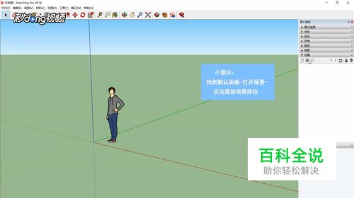 首先我们打开SketchUp软件,找到右方的默认面板,打开“场景”,点击添加场景按钮。