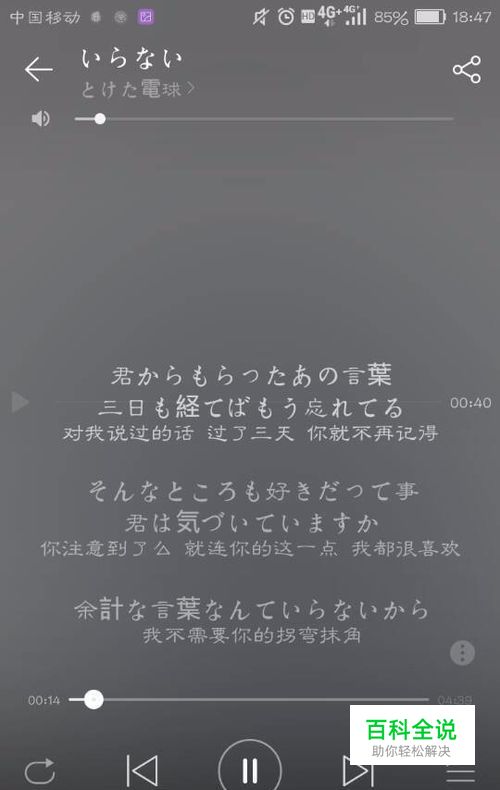 播放一首歌,点开歌曲查看歌词的界面。