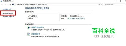 打开“网络适配器设置”对适配器进行修改,然后找到需要连接的网络,虽然仍是不可上网状态,设置改一下。