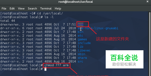 在/usr/local/下建立一个名为arm的文件夹,在终端中输入命令:cd /usr/local/,回车,然后再输入命令:mkdir arm,建立arm目录,并修改该文件夹的属性为rwx,输入命令:chmod 777 arm